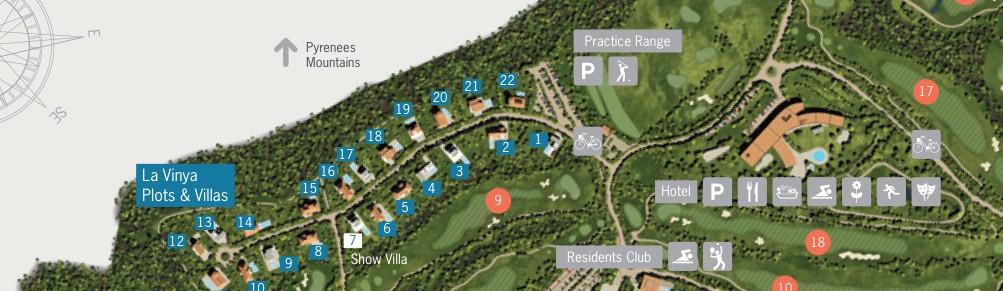 La Pineda, the newest sector of the resort, offers endless possibilities with nine single family homes and nine large plots of more than 1000 m2 each. It is located in a sheltered area of lush vegetation between the 7th holes of the Tour Course and the Stadium Course.